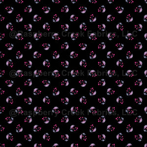Berries and botanicals in gray, magenta, red, pink and white on black. Coordinate for Gloria Watercolor Floral Collection. Small scale, fabric, home decor