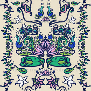 Bharat Nouveau - Peacocks, Jasmine, Lotus Flowers, Eyes - Beige, Pink, Lavender, Aqua, Navy Blue, Green
