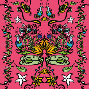 Bharat Nouveau - Peacocks, Jasmine, Lotus Flowers, Eyes - Dark Pink, Aqua, Yellow, Orange, Green