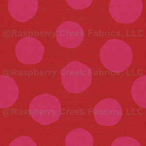 Big pink polka dots on red linen texture. Brightly colored polka dots for girls dresses, summer tops, toddler clothes.