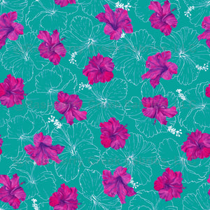 Big Watercolour Hibiscus Pattern Aqua Green And Pink Purple