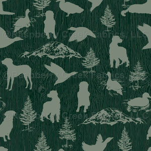 Bird Hunting Silhouettes - forest green - hunting dogs, ducks, mountains - Cabin Country Collection