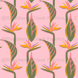 This delightful Bird of Paradise Print will liven up any space with vibrant complimentary colors on this unique plant! This print is in a stripe pattern and would make a beautiful shower curtain, table runner, apron or throw pillows! It would also work well on the made for you waffle towels or minky blankets.
