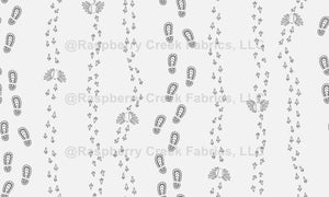 This design features boot and bird footprints with a wing print from the bird taking off in flight like the print you might find on a snowy day. This design would be fun for any bird lover.