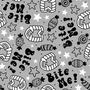 Bite Me! Vampire Teeth and Halloween Candy Grey