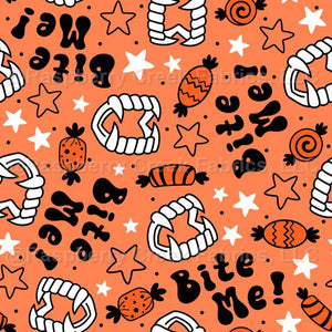Bite Me! Vampire Teeth and Halloween Candy in Orange