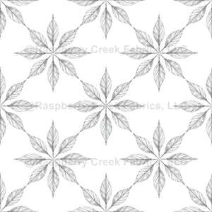 A black and white minimalist vector illustration of a seamless geometric pattern featuring abstract leaf shapes.