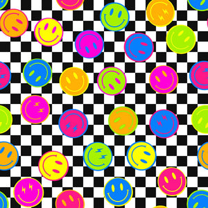Black Bright Green Lipstick Pink Neon Yellow Orange and Blue Smile Checker Print Fabric, Bright by Brittney Laidlaw