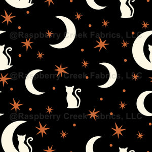 Black cats, moon and stars, Halloween, black