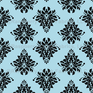 Black Damask on Sky Blue