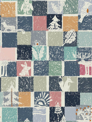 Hand printed inspired check pattern in soft chalk colors. Scandinavian style. Pattern from the mini collection „Black forest Kids“.