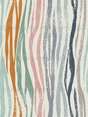 Hand printed inspired stripe pattern in soft chalk colors. Reminiscent of animal skins or annual rings. Scandinavian style. Pattern from the mini collection „Black forest Kids“.