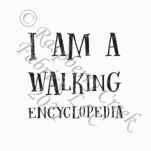Black Grey and White Vintage Look I Am A Walking Encyclopedia Panel, Back to School By Bri Powell for Club Fabrics