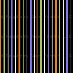 Candy Stripe design in a vintage halloween color pallet of orange, green & purple on a black background.