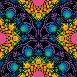 Black Maximalist Rainbow Floral Fountain Art Deco Scallop