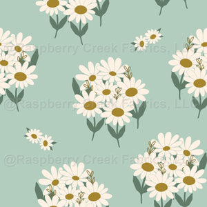 Blossom Bouquets {on Subtle Green} Boho Daisy Wildflowers on Light Teal // Joyful Blossoms
