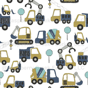 Blue and Chartreuse Green Construction Vehicles