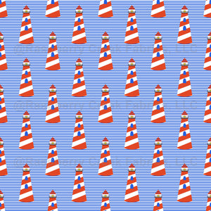 Blue and white stripes, nautical pattern with lighthouse, medium size