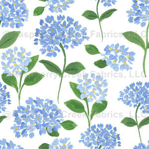 Beautiful hand painted blue hydrangea pattern for fabric, dresses, wallpaper and more