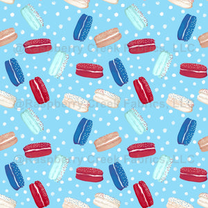 blue, polka dots, macaroons, treats, sweets, patriotic, red, white, 4th of July, Independence Day, baking, food