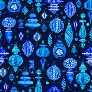Blue Watercolor Christmas Ornaments on Deep Blue (Winter Snow 2022 Collection)
