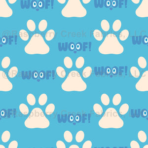 A cute paw print with doggy eyes and woofs!