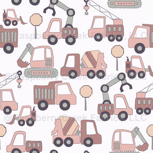 Blush Pink and Purple Construction Vehicles
