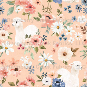 Blush pink delicate floral with cute llamas, alpacas by Cate and Rainn® ©Cate and Rainn. All rights reserved.