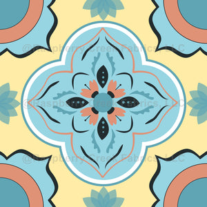 A Moroccan style mosaic tile print for all your home projects! In navy, teal, yellow and burgundy shades