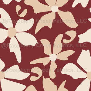 Boho neutral and beige hand drawn flowers linear floral burgundy maroon