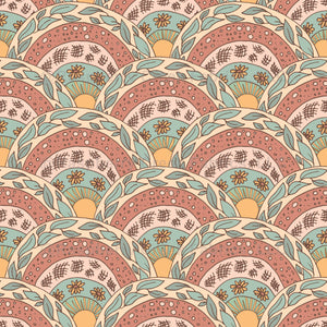 Hand-Drawn Rainbow, Flower, Leaf, Sun Motifs in Muted Colorway
