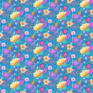 Bold Florals on Blue - Medium