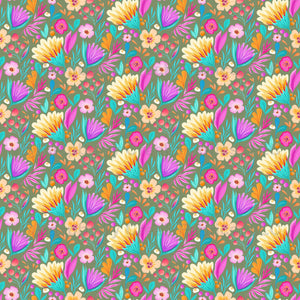 Bold Florals on Khaki - Medium