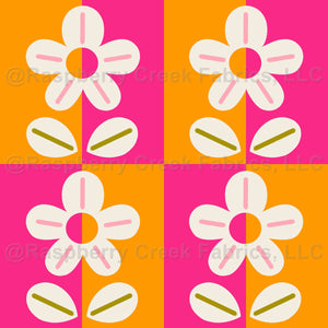 midcentury modern bold checkered floral design orange and pink