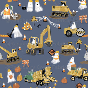 Boo construction crew, construction, vehicles, ghosts, kids, whimsical, boys, dusty blue, blue, pumpkins, halloween, fall