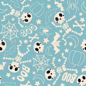 Boo Halloween Skeletons Pumpkins Spiders Bats Skulls Blue