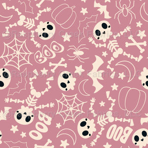 Boo! Halloween Skeletons Pumpkins Spiders Bats Skulls in Dusty Pink