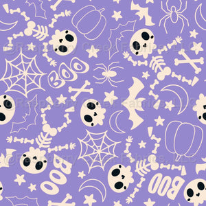 Boo Halloween Skeletons Pumpkins Spiders Bats Skulls Lavender Purple