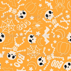 Boo Halloween Skeletons Pumpkins Spiders Bats Skulls Marigold Yellow