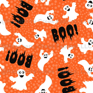 Boo! Spooky White Ghosts on Orange