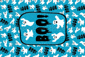 Boo! Spooky White Ghosts Panel in Blue