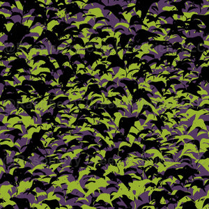 A whimsical Halloween botanical design in rich Purple, black and neon green tones. Perfect for festive holiday décor, seasonal sewing projects, apparel, and accessories that bring a touch of spooky elegance to your creative makes.