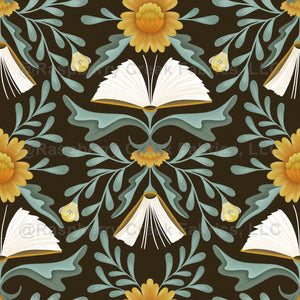 A book unfolds its magic like a flower. A design for reading rooms, librarys or book lovers. “Books Disguised as Flowers” ​​takes your library into the world of artistic expression. Made up of simple, symmetrical shapes and bold teal tones, this wallpaper will add an intriguing atmosphere to any room. This captivating folk art design emulates cleverly and delightfully arranged books, making it the perfect choice for both casual and sophisticated library or reading room environments. The subtle pattern and graceful contrast of this wallpaper allows it to blend easily into any decor. Its unique design adds an aura of prestige and charm to the aesthetics of your room. Let books disguised as flowers take your space to the next level.