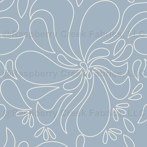 Born to be free collection. Light blue gray background with paisley outlines in cream.