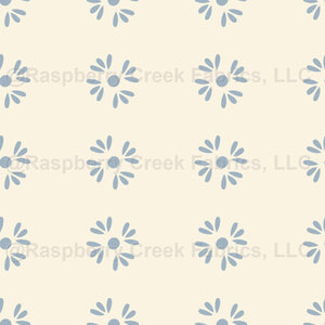 Born to be Free Collection. Light blue gray flower on a cream background in a striped formation.