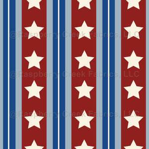 Born to be free collection, stars and stripes. Red and blue stripes with cream colored stars. Vertical Stripes. Great for boys room, family room, bathroom. Patriotic design.