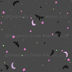 Bright green, dark gray, gray, pink, watercolor, black, bats, scattered, ditsy, kids, women, girls, stars, moons, fall, Halloween,