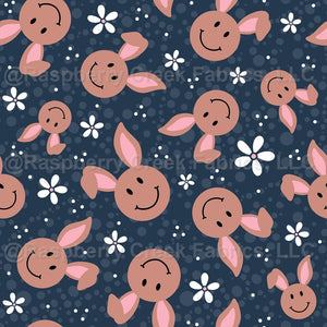 Brown Easter Bunny Smiley Faces and Daisy Flowers on Navy