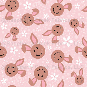 Brown Easter Bunny Smiley Faces and Daisy Flowers on Pink