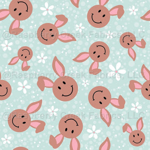 Brown Easter Bunny Smiley Faces and Daisy Flowers on Soft Mint